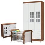 Quarto De Bebê Mariah 3 Portas Com Berço Lara Branco Acetinado Amadeirado - CarolinaQuarto de Bebê Mariah 3 Portas com Berço Lara Branco Acetinado Amadeirado - CarolinaProcurando por móveis para o quartinho do Bebê com um lindo design, qualidade e bom preço? Só aqui você encontra os melhores produtos com os melhores preços! Desenvolvidos pela Carolina o Quarto de Bebê Mariah 3 Portas com Berço Lara na cor Branco Acetinado Amadeirado possui um amplo espaço para melhor organização das roupinhas, sapatinhos e utensílios proporcionando maior comodidade e no dia a dia. Compre com a praticidade de não sair de casa. Confira e aproveite esta !Berço Americano Lara Branco Acetinado Amadeirado - CarolinaCaracterísticas técnicas:- Desenvolvido em MDF/MDP- Pintura e acabamento em U.V na cor Branco Acetinado Amadeirado- Sistema de pintura atóxico que não faz mal a saúde do bebê- Alta resistência- Superfícies e bordas lisas e retas- Estrado em madeira maciça com duas alturas de regulagem- Padrão americano- Acompanha suporte mosquiteiro- Indicado colchão 70x130 cm- Função mini cama e sofá cama aumentando a vida útil do móvel- Maior para o seu bebê- Lindo designDimensões:Altura: 90 cmLargura: 154 cmProfundidade: 78 cmCômoda Infantil com Porta Mariah Branco Acetinado Amadeirado - CarolinaCaracterísticas técnicas:- Desenvolvida em MDF/MDP- Pintura e acabamento em U.V na cor Branco Acetinado Amadeirado- Sistema de pintura atóxico que não faz mal ao bebê- Possui 03 gavetas- Possui 01 porta- Sistema anti-tombamento, fixado na parede- Maior organização e praticidade- Lindo designDimensões:Altura: 93 cmLargura: 95 cmProfundidade: 41 cmGuarda Roupa Infantil 3 Portas Mariah Branco Acetinado Amadeirado - CarolinaCaracterísticas técnicas:- Desenvolvida em MDF/MDP- Pintura e acabamento em U.V na cor Branco Acetinado Amadeirado- Sistema de pintura atóxico que não faz mal ao bebê- Possui 02 gavetas- Possui 03 portas- Sistema anti-tombamento, fixado na parede- Maior espaço, organização e praticidade- Lindo designDimensões:Altura: 190 cmLargura: 94 cmProfundidade: 40 cmObs: Não realizamos a montagem, porém acompanha manual de instruções.