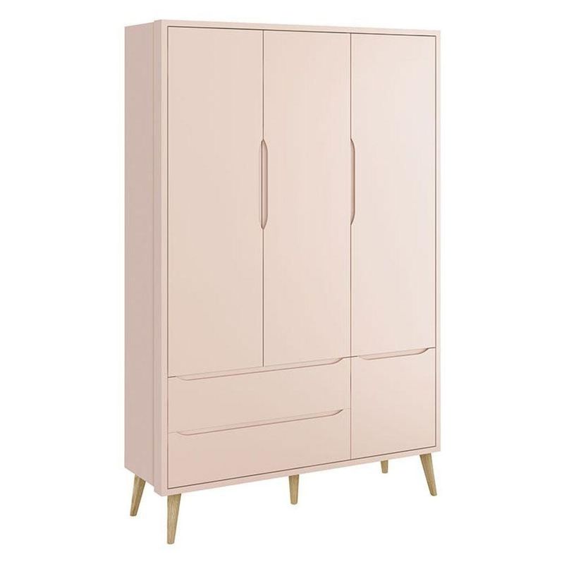 Quarto De Bebê Theo 3 Portas Cômoda Gaveteiro Rosa Com Pés Madeira Natural - RellerQuarto de Bebê Theo 3 Portas Cômoda Gaveteiro Rosa com Pés Madeira Natural – RellerDecorar o quarto do bebê é um momento muito importante, nessa hora a mamãe procura por móveis com qualidade, durabilidade, e com lindo design. Pensando em suprir essas expectativas, apresentamos a você o Quarto de bebê Theo da linha Color, mais um lindo modelo fabricado pela Reller. Desenvolvido com amplo espaço para guardar as roupas e os acessórios do bebê, proporcionando praticidade à mamãe na hora da organização, e conforto e a segurança para que o bebê tenha uma melhor noite de sono. Confira abaixo mais informações sobre estes lindos produtos!Características Técnicas:Berço Americano Theo Rosa com Pés Madeira Natural – RellerCaracterísticas Técnicas:- Desenvolvido em MDF- Sistema de pintura utiliza tinta atóxica, que não faz mal a saúde do bebê- Pintura e acabamento em U.V na cor rosa acetinado- Certificado pelo INMETRO- Transforma-se em mini cama- Padrão americano- Cantos arredondados- Estrado do colchão com três níveis de altura, podendo ser regulado conforme as fases de crescimento do bebê- Grade Fixa- Utiliza colchão de 130x70 cm (Vendido separadamente)- Pés desenvolvidos em madeira maciça na cor naturalDimensões:Altura: 95 cmLargura: 135 cmProfundidade: 76 cmGuarda Roupa Infantil Theo 3 Portas Rosa com Pés Madeira Natural – RellerCaracterísticas Técnicas:- Desenvolvido em 100 % MDF- Sistema de pintura utiliza tinta atóxica, que não faz mal a saúde do bebê- Pintura e acabamento em U.V na cor rosa acetinado- 03 portas- 02 gavetas com corrediças telescópicas- Ótimas divisões Internas- Possui cabideiro metálico- Maior Organização, espaço e praticidade- Puxadores embutidos- Pés desenvolvidos em madeira maciça na cor naturalDimensões:Altura: 205 cmLargura: 133 cmProfundidade: 46 cm Cômoda Gaveteiro Infantil Theo Rosa com Pés Madeira Natural - RellerCaracterísticas Técnicas:- Desenvolvido em MDF- Sistema de pintura utiliza tinta atóxica, que não faz mal a saúde do bebê- Pintura e acabamento em U.V na cor Rosa Acetinado- Possui 03 Gavetas- Corrediças Telescópicas deslizam livres de enrosco- Maior organização e praticidade- Puxadores embutidos- Pés desenvolvidos em madeira maciça na cor natural- Lindo designDimensões:Altura: 91 cmLargura: 91 cmProfundidade: 46 cmObs: Não realizamos a montagem dos produtos, porém acompanha manual de instruções.