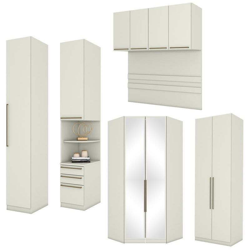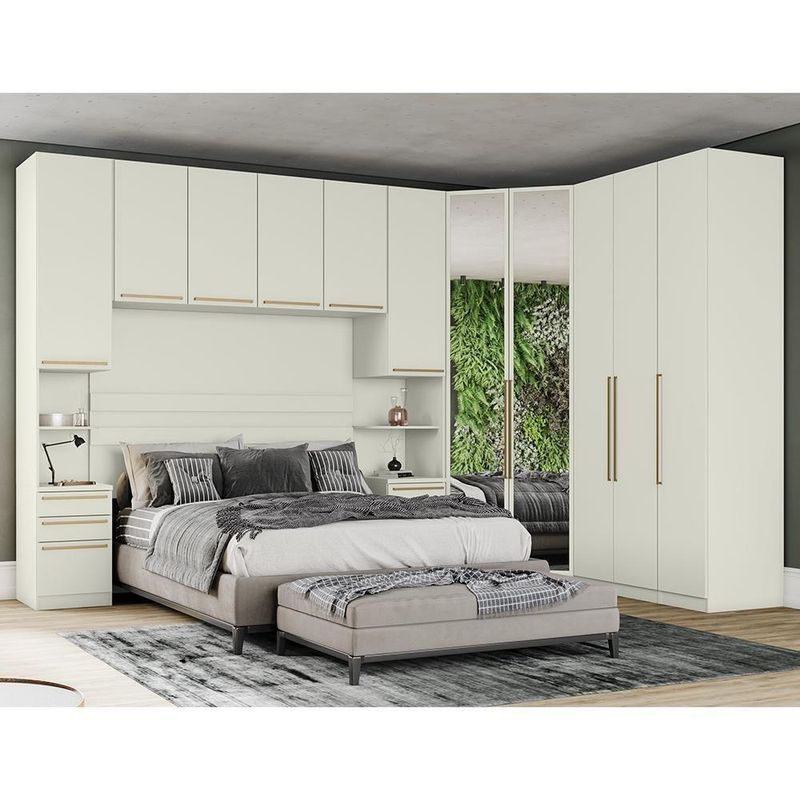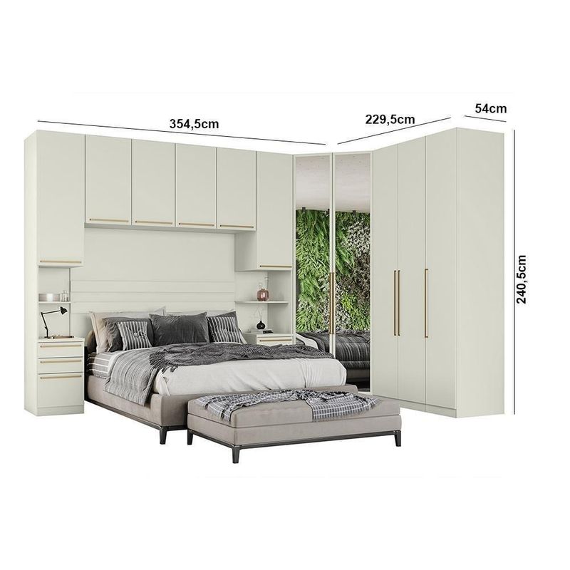 Quarto Modulado Casal Seletto 6 Peças Closet Areia Com Espelho - Móveis Henn Areia Quarto Modulado Casal Seletto 6 Peças Closet com Espelho - Móveis Henn O Quarto Modulado Seletto é completo e foi desenvolvido para atender as mais diversas necessidades de uso e espaço. Com ele, você tem muitas possibilidades de combinações e pode montar o quarto dos seus sonhos. Ele é composto por 6 módulos que podem ser montados de acordo com seu espaço. O modulado Seletto tem 240,5 cm de altura, 2 opções de cores e mais de 10 módulos disponíveis, permitindo criar composições únicas.ESPECIFICAÇÕES: - Estrutura em MDP - Pintura UV - 11 Portas em MDF - 6 Gavetas internas - 6 Gavetas externas - Dobradiças 35mm com amortecimento - Corrediças telescópicas - Cabideiros em alumínio - Puxador alça em alumínio - Detalhe ripado no painel - Compatível com cama até 165cm - Espelho - Amplo espaço interno O ambiente é composto por (L x A x P): 2x MC02-133 Mesa de Cabeceira 1 Porta 3 Gavetas: 40 x 240,5 x 54 cm 1x MC11-133 Ponte Casal 4 Portas: 165 x 185 x 54 cm 1x MC06-133 Guarda-Roupa Canto Closet 2 Portas com espelho: 109,5 x 240,5 x 109,5 cm 1x MC03-133 Guarda-Roupa 2 Portas 3 Gavetas: 80 x 240,5 x 54 cm 1x MC01-133 Guarda-Roupa 1 Porta: 40 x 240,5 x 54 cm * Não acompanha cama e colchão Dimensões do Produto Montado: Altura: 240,5 cm Largura: 354,5 x 229,5 cm Profundidade Maior: 109,5 cm Profundidade Menor: 54 cm Garantia: 3 meses Montagem: O Produto vai desmontado com manual e todos acessórios. Recomendamos que a montagem seja feita por um profissional Recomendação de Limpeza: Utilize pano levemente úmido Observações: - A LOJA se responsabilizará pela entrega dos produtos até aonde as rodovias alcançam, entregas fluviais ou aéreas devem ser cotadas a parte. - As imagens são ilustrativas, não acompanham objetos de decoração. - Pode haver alguma diferença de tonalidade entre a imagem e o produto, por conta do tratamento de imagens e a calibração de cores da sua tela. - A montagem será de responsabilidade do comprador. Entregamos até a porta de entrada da residência ou até a portaria do condomínio. Não nos responsabilizamos, no ato da entrega, por subir escadas/elevadores ou transporte por guincho em apartamentos. Eventuais despesas são de responsabilidade do comprador. - Confira as dimensões do produto no momento da compra e certifique-se de que passará normalmente por supostos elevadores, portas, escadas e/ou corredores de sua residência. Para mais informações, acesse nossa Central de Atendimento. Tipo de Guarda Roupa: Modulado | Tonalidade: Multicolorido | Quantidade de Portas: 11 | Fabricante: Henn Cor: Areia