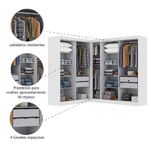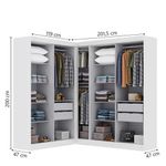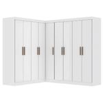 Quarto Modulado De Canto Madrid Com 9 Portas MaxelTransforme seu ambiente com o Quarto Modulado de Canto Madrid, que oferece versatilidade, praticidade e organização para o seu espaço.Ele conta com cabideiros resistentes, ideais para pendurar roupas sem amassar, além de prateleiras internas bem distribuídas, que permitem melhor aproveitamento do espaço para roupas dobradas, caixas ou acessórios. O móvel ainda possui 4 gavetas espaçosas, perfeitas para manter tudo em ordem.É uma solução funcional, versátil e eficiente, ideal para quem busca um ambiente organizado com design moderno.Especificações TécnicasMedidas:Lado Esquerdo: Altura 200 cm x Largura 119 cm x Profundidade 47 cmLado Direito: Altura 200 cm x Largura 201,5 cm x Profundidade 47 cmPeso total: 190,80 kgCapacidade de cargaPeso suportado total: até 112 kgPrateleiras: até 6 kg cada (9 unidades)Cabideiros: até 12 kg cada (3 unidades em madeira)Gavetas: até 3 kg cada (4 unidades)Estrutura:Modelo: Quarto Modulado de Canto Madrid com 9 PortasMarca: MaxelMaterial: MDP de 12 mmPintura: Verniz alto brilhoAcabamento: TexturizadoCor: BrancoPortas e gavetasPortas: 9, tipo baterDobradiças: MetálicasCorrediças: MetálicasPuxadores: PlásticoOutros detalhesPés: Não possuiDiferenciais: amplo espaço de armazenamento, acabamento em verniz texturizado, brilho nas portas e possibilidade de montagem do módulo em ambos os lados.Itens Inclusos:1 Módulo de canto2 Módulos de guarda-roupas1 Manual de montagem1 Kit de parafusosInstruções e Cuidados:Limpeza deve ser feita com pano limpo levemente umedecido em água e sabão neutro.Finalizar com pano seco.Garantia: 3 mesesObservações Importantes:Entrega: realizada até a portaria ou porta de entrada do endereço indicado, desde que o acesso seja permitido.Para locais com portaria, a entrega será feita no piso térreo.Não realizamos: montagem, desmontagem, transporte por escadas ou içamento.Atenção: verifique as dimensões do produto antes da compra para garantir compatibilidade com portas, elevadores e corredores.