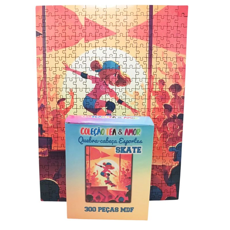 Quebra-Cabeça Educativo Esportes Skate Para Crianças 300 Peças Prepare-se para apresentar ao seu filho uma experiência única de diversão e aprendizado com o Quebra-Cabeça Educativo Esportes Skate! Com 300 peças, esse quebra-cabeça foi criado especialmente para crianças que adoram desafios e têm interesse pelo universo dos esportes, em especial o skate. Cada peça encaixa-se perfeitamente, proporcionando horas de entretenimento saudável. Além de ser educativo, o Quebra-Cabeça é visualmente encantador! Com uma ilustração vibrante, ele vai cativar seu filho e manter seu interesse durante toda a montagem. Ao completar o quebra-cabeça, seu pequeno terá o orgulho de ver a obra finalizada, uma verdadeira obra de arte esportiva! Cada peça que seu filho encaixar ajuda a aprimorar a coordenação motora e o raciocínio lógico, enquanto ele se concentra para montar a imagem emocionante. O processo de montagem fortalece habilidades cognitivas essenciais, como memória, atenção e percepção espacial, preparando seu filho para desafios futuros de maneira divertida e envolvente. Mais do que apenas um passatempo, esse quebra-cabeça é uma forma de aprender brincando! Características do Produto: Medidas : 39X29 cm ( montado) Material : MDF Qtde de Peças : 300 Peças
