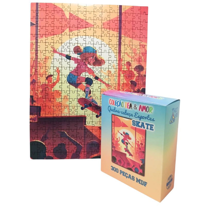 Quebra-Cabeça Infantil Skate 300 Peças Diversão Para Familia Prepare-se para apresentar ao seu filho uma experiência única de diversão e aprendizado com o Quebra-Cabeça Educativo Esportes Skate! Com 300 peças, esse quebra-cabeça foi criado especialmente para crianças que adoram desafios e têm interesse pelo universo dos esportes, em especial o skate. Cada peça encaixa-se perfeitamente, proporcionando horas de entretenimento saudável. Além de ser educativo, o Quebra-Cabeça é visualmente encantador! Com uma ilustração vibrante, ele vai cativar seu filho e manter seu interesse durante toda a montagem. Ao completar o quebra-cabeça, seu pequeno terá o orgulho de ver a obra finalizada, uma verdadeira obra de arte esportiva! Cada peça que seu filho encaixar ajuda a aprimorar a coordenação motora e o raciocínio lógico, enquanto ele se concentra para montar a imagem emocionante. O processo de montagem fortalece habilidades cognitivas essenciais, como memória, atenção e percepção espacial, preparando seu filho para desafios futuros de maneira divertida e envolvente. Mais do que apenas um passatempo, esse quebra-cabeça é uma forma de aprender brincando! Características do Produto: Medidas : 39X29 cm ( montado) Material : MDF Qtde de Peças : 300 Peças