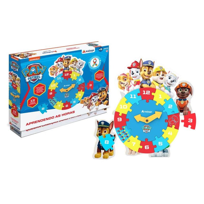O Quebra-Cabeça Aprendendo as Horas proporciona um aprendizado divertido sobre as horas e números. De forma lúdica e criativa, a criança pode montar e desmontar as peças de cada hora do relógio, associando números e quantidades através de suas ilustrações com a turminha da Patrulha Canina. Contém 01 base do relógio com ponteiros, 12 peças de encaixe em madeira reflorestada e 01 rebite metálico. Indicado para crianças a partir de 5 anos.Dimensões do relógio: 37,5 x 25,5 cmIdade Recomendada: A partir dos 05 anos de idade.Contém: 13 peças.
