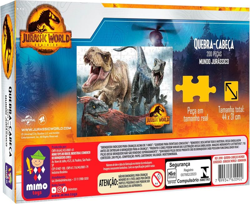 Quebra-Cabecas 200 pecas Jurassic World Dominion - MIMOO Quebra-Cabeça Mimo Jurassic World de 200 peças é a escolha perfeita para crianças que amam dinossauros e desafios criativos Com ilustrações vibrantes do universo Mundo Jurássico, o brinquedo estimula a concentração, coordenação motora e raciocínio lógico de forma divertida e educativa 200 peças coloridas: montagem envolvente com imagens incríveis dos personagens de Jurassic World Estimula habilidades cognitivas: desenvolve atenção, lógica e coordenação motora fina Ideal para crianças e fãs da franquia: diversão garantida para toda a família Material resistente: peças duráveis e seguras para o uso infantil Design temático: artes oficiais do Mundo Jurássico que tornam a experiência ainda mais emocionante Proporcione momentos educativos e empolgantes com o Quebra-Cabeça Mimo Jurassic World Um passatempo perfeito para os pequenos paleontólogosDetalhes: Certificação: Certificado Pelos Órgãos Autorizados - OCP`S(Organismos De Certificação De Produtos) Registro: 008653/2022 OCP:0133Características: Conteúdo da embalagem: 01 quebra-cabeça de 200 peças Material/composição: papel cartonado Ref: 2090 Marca: Mimo Brinquedos Modelo: Quebra-Cabecas 200 pecas Jurassic World Dominion Idade indicada: 7+ anos Código de barras: 7899347620902 Altura aproximada da embalagem (A x L x C): 21 cm x 31 cm x 6 cm Aviso: as cores podem variar entre as imagens mostradas acima e o produto Imagens meramente ilustrativas Garantia: 03 meses contra defeitos de fabricação