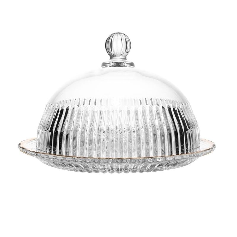 Utilidades DomésticasAcessórios para Queijos e Vinhos QueijeiraQueijeira com Tampa Wolff Império 20x20x13,5cm Cristal Fio de Ouro com Tampa Alta