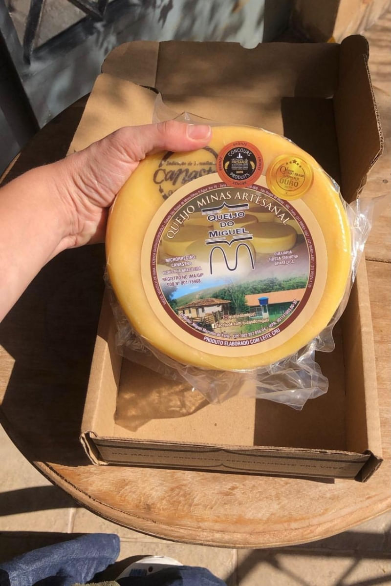 A história do Queijo do Miguel é marcada pela tradição de mais de meio século de produção dessa iguaria na Fazenda Santiago Monjolo em São Roque de Minas, tendo sido passada de pai para filho e perdura nos dias de hoje com a Queijaria Nossa Senhora Aparecida, sob direção de Miguel Marcelio de Faria e família.Inicialmente, seus avós e posteriormente seus pais produziam o queijo em moldes feitos de coité. O Senhor Miguel desde sua infância, ainda muito pequeno utilizava um banquinho para alcançar a banca de queijo e ajudar na produção. Na época, o queijo era produzido em pequena escala e ele ajudava seus tios a transportarem o queijo canastra no carrinho de carneiro. Toda a pequena produção da Fazenda dos seus pais e de alguns queijeiros da região era levada no carrinho de carneiro por muitos quilômetros até chegar na cidade. As estradas eram de difícil acesso e a única forma de transporte do queijo até a cidade era pelo carrinho de carneiro que percorria longas distâncias passando por matas e córregos da região. O Senhor Miguel saiu da Fazenda aos 18 anos para trabalhar de encarregado na construção civil, mas nunca esqueceu de suas origens. Enquanto isso o queijo ainda era produzido na Fazenda da Família. Mas foi comercialmente, em 2004, que Miguel e sua família retomaram a produção do queijo Canastra Artesanal. Desta forma, foi emrpegado todos os seus esforços no período em que o queijo canastra não possuía projeção nacional, momento utilizava o maior contingente de sua produção no comércio da família no ramo de panificação.Infelizmente, nosso queijo foi alvo de falsificação, tendo sido instaurado procedimento de investigação criminal e para tentar coibir essa prática, todos os nossos queijos possuem a inscrição M, como marca de identificação. Além disso, é a utilizada a etiqueta de caseína, nos queijos de nossa produção e essa forma de identificação é adotada desde 2019 e consta no queijo do Miguel a indicação do número 007, como produtor da Canastra associado a Aprocran. A etiqueta de caseína é composta por oito dígitos e por ela é possível (pelo número constante no queijo) rastrear a data de Produção e sua procedência. O reconhecimento do Queijo do Miguel veio com diversas premiações, as mais recentes delas foi o Bronze no Mondial Du Fromage na França (2019), primeiro Lugar no Concurso Regional (2019) e 2 ouros no V Prêmio Queijo Brasil em 2019 .Importante: este produto é enviado sempre e somente às segundas-feiras.