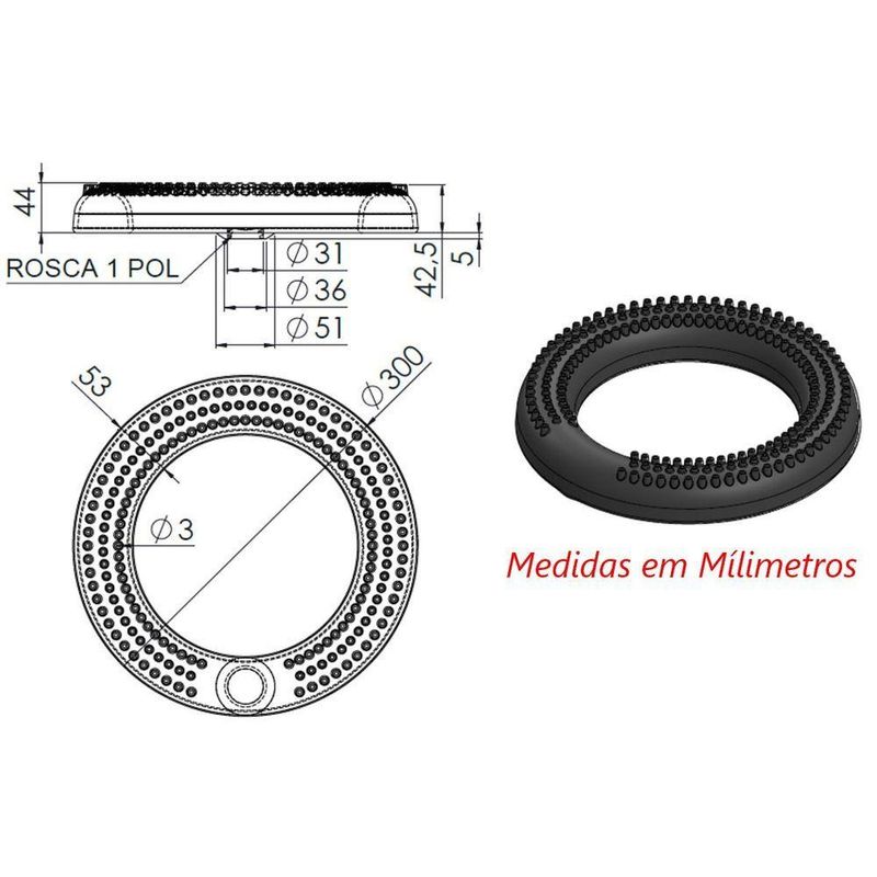 Queimador Alta Pressão Coroa Fogão Industrial Furado 30cmQueimador Alta Pressão Coroa Fogão Industrial Furado 30cmIdeal para cozinhas industriais, este queimador oferece chama intensa e estável, garantindo alto desempenho. Fabricado em material resistente, com coroa furada para combustão eficiente. Pode ser utilizado em de gás de rosca 1”, perfeito para recipientes grandes. Essencial para quem busca eficiência e qualidade na cozinha. Esse tipo de queimador é projetado para fornecer uma chama intensa e estável, ideal para cozinhas industriais onde é necessário cozinhar grandes quantidades de alimentos rapidamente.Características Técnicas:Diâmetro do Bocal: 3,1cm.Material: Ferro Fundido.Diâmetro Total: 30cm.Peso: 3,530Kg.Altura: 4,4cm.Rosca: 1”.Itens Inclusos:01 Queimador Alta Pressão Coroa Fogão Industrial Furado Rosca 1” 30cm.Código: 94143LBProdutoLojaPlast.