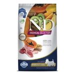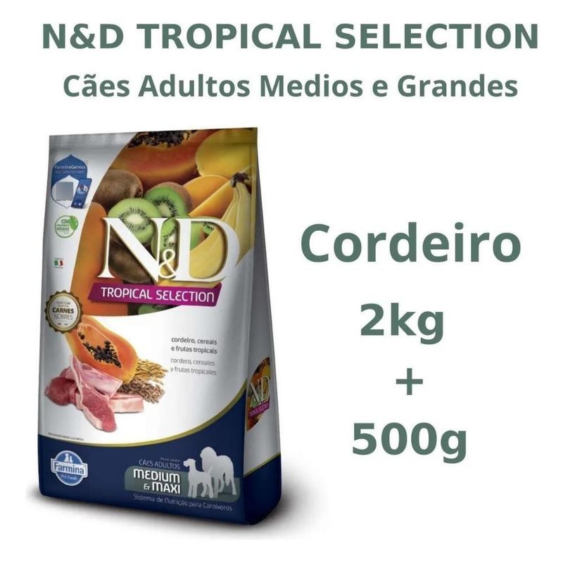 Ração Para Cães N&d Tropical Mini Frango 2,5kgAlimento essencial para cães, ração premium com refeição completa e equilibrada em cada porção. Com muita proteína, estimulando a massa muscular magra e fornecendo energia para o dia inteiro do pet. Reforça o sistema imunológico com nutrientes de qualidade e fortalece o sistema digestivo com sua alta gama de qualidade nutricional. Garante uma pelagem bonita, um cão saudável e uma alimentação completa, não perca!DestaquesOferece pelos mais vivos e brilhantes, com os nutrientes tornando a pelagem mais saudável. A quantidade de bons nutrientes dá ao pet energia de sobra para gastar.Torna a rotina do animal mais saudável, colocando na dieta dele todos os componentes que fazem bem ao corpo.Alimentação balanceada, não pesa para nenhum objetivo específico além de um corpo forte e saudável e todos os sistemas corporais funcionando.Refeição que contém anti toxinas naturais que ajudam e fortalecem o sistema imunológico a se proteger contra doenças.Sabor irresistível de cordeiro que o pet irá amar, tornando cada refeição prazerosa.Modo de usoConsultar a tabela de quantidades diárias indicada na embalagem.Ajustar a porção de acordo com peso, idade e nível de atividade do cão.Manter sempre água limpa e fresca disponível para o animal.Levar o cão regularmente ao médico veterinário para acompanhamento da saúde e nutrição.EspecificaçõesTipo de alimento: ração seca, completa e balanceada.Principais ingredientes: proteínas de cordeiro, grãos ancestrais como espelta e aveia, frutas tropicais, antioxidantes naturais, polpa de beterraba, cenoura, espinafre, óleo de peixe, óleo de frango e levedura.Benefícios nutricionais: fortalece o sistema imunológico, auxilia na saciedade, controla o apetite, mantém energia e vitalidade, promove pelagem brilhante e pele saudável. Animal de estimação recomendado: Cão