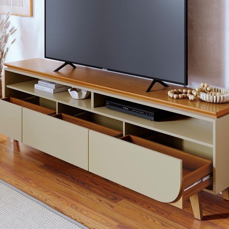 Rack Bancada Selene 3 Gavetas Pés De Madeira Cumaru E Opala - PallazioA Bancada Selene é a escolha perfeita para quem busca funcionalidade e elegância na composição do ambiente. Com design moderno e linhas bem definidas, ela se adapta facilmente a diferentes espaços, como salas de jantar, áreas gourmet ou ambientes integrados, valorizando a decoração com estilo.Sua estrutura foi pensada para oferecer praticidade no dia a dia, proporcionando uma superfície ampla e resistente para apoio e organização. A Bancada Selene combina durabilidade e acabamento refinado, garantindo um visual sofisticado e um excelente desempenho no uso contínuo.Versátil e contemporânea, a Bancada Selene harmoniza com diversos estilos de decoração e móveis, tornando o ambiente mais funcional e convidativo. Ideal para quem deseja otimizar o espaço com charme e eficiência, ela é uma peça que une design, qualidade e praticidade.Informações Técnicas:Estrutura: MDP 15 e 25mmMaterial dos Pés: Madeira RetrôPuxadores: PoliestirenoMontagem: O produto não vai montado, aconeselhamos a contratação de um montador profissional para realizar a montagem do item.Medidas da Bancada:Altura total: 62,5 cmLargura total: 2 mProfundidade total: 36 cmPeso: 37 kgInformações Importantes:Confira as dimensões do produto no momento da compra e certifique-se de que passará normalmente por escadas, elevadores, portas e corredores.Os produtos vão embalados e enviados com total segurança.As cores dos produtos podem sofrer alterações dependendo do seu monitor.Não nos responsabilizamos no ato da entrega por montagens, desmontagens, instalações de produtos.Não nos responsabilizamos no ato da entrega por subir escadas, elevadores, nem utilização de guinchos ou equipamentos similares para acesso a pisos superiores em apartamentos.