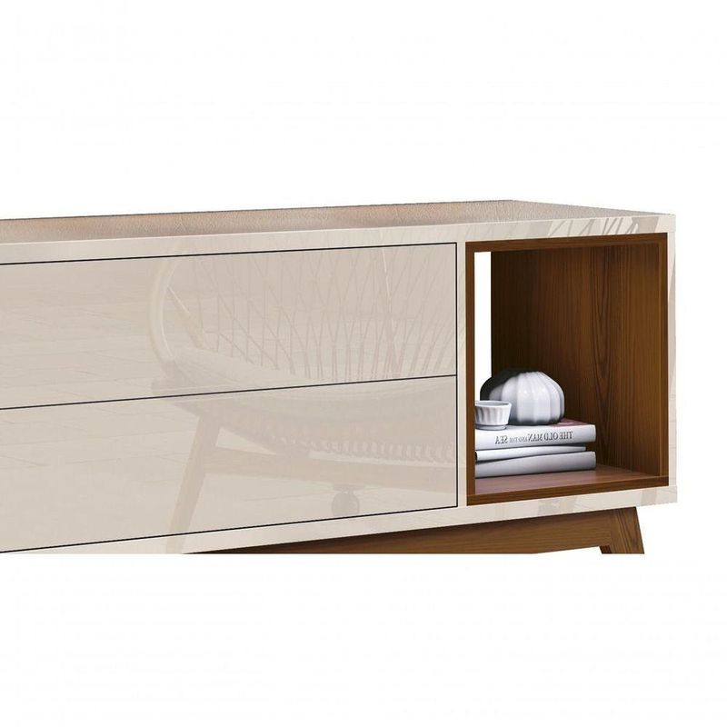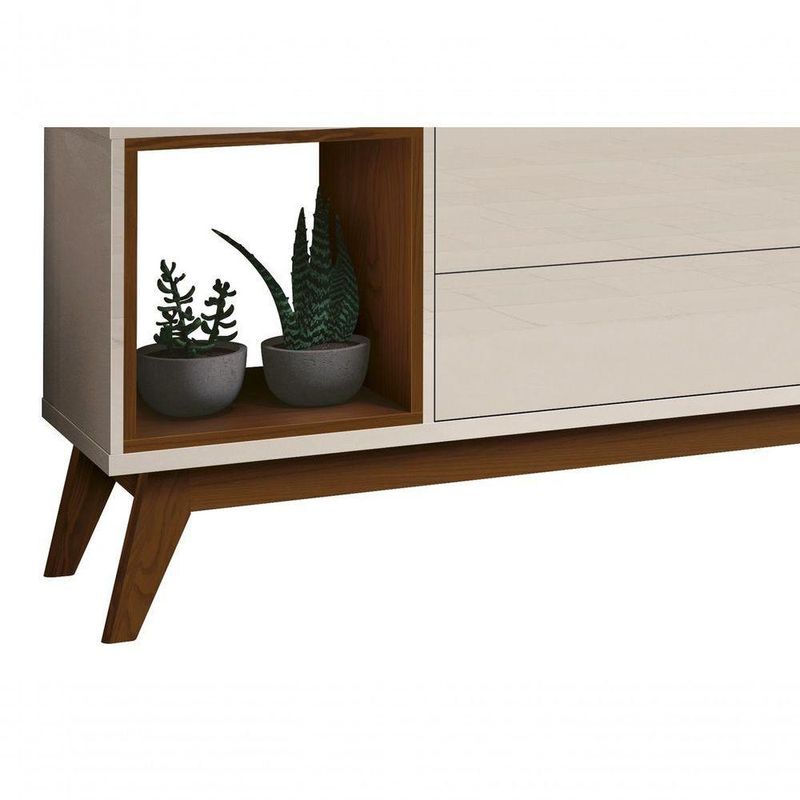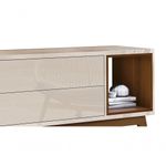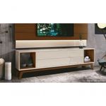Rack Para Tv Delux 1.8 Off White Com Natural - MoveisaquiO Rack Delux 1.8 - Móveis Aqui é o tipo de móvel indispensável para complementar sua sala de estar. Produzido com materiais de excelente qualidade, ele se torna a peça perfeita para deixar seu ambiente muito mais elegante e charmoso. Lindo e completo, é a escolha ideal para manter seu espaço sempre organizado e muito mais bonito. Dimensões do Produto Montado:Altura: 62 cmLargura: 183 cmProfundidade: 38,5 cmObservações:- Estrutura em MDP/MDF;- Gavetas com sistema de abertura On Touch (Mecanismo de toque para abrir e fechar possibilitando uma gaveta sem puxadores);- Corrediças telescópicas;- Pé em madeira maciça;- Ideal para TVs de até 60 polegadas;- Pintura Ultravioleta com acabamento brilho na cor Off White;- Pintura Ultravioleta com acabamento fosco na cor Natural.