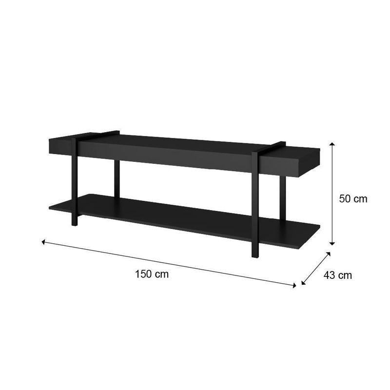 Rack Para Tv Habitat Madeirado E Tubos Pretos Carraro - Preto Preto O Rack para TV Carraro possui design contemporâneo combinado com linhas descomplicadas e funcionais, trazendo ao ambiente modernidade e sofisticação. Seu amplo espaço inferior é perfeito para armazenar objetos e decorações. É um produto versátil que pode ser ;colocado em diversos ;locais da casa e seu acabamento traseiro permite a utilização dele como divisor de ambientes.Especificações do Produto:Medidas: Largura: 150 cm | Altura: 50 cm | Profundidade: 43 cmPeso: 18,2 KgMatéria Prima: MDPEstrutura: Tubo de AçoMontagem: Minifix e ParafusoGarantia:Os produtos possuem garantia de 03 meses (se em condições normais), contra defeito de fabricação, ou componentes utilizados.Esta garantia não cobre defeitos por uso inadequado ou abusivo, falta de cuidados e desbotamento natural dos revestimentos.Condições de perda da garantia:- Mau uso ou manuseio incorreto.- Desbotamento ca pela exposição direta da luz solar.- Danos cas por agentes da natureza, como inundações ou acidentes de qualquer espécie.- Uso indevido de produtos abrasivos para realizar a limpeza.- Decurso do prazo estabelecido.Recomendações para uma boa conservação:- Não utilizar na limpeza produtos abrasivos tais como: palha de aço, álcool, vinagre, limão, saponáceo, ou produtos corrosivos que possam riscar ou descolar a película protetora dos móveis.- Na limpeza de móveis em geral, napas e fórmicas, deve ser utilizado um pano levemente umedecido e sabão neutro.- Para a movimentação do móvel é importante que este seja levantado do chão, pois ao arrastá-lo pode causar estruturais.- Não deixe o móvel em exposição a intempéries.Informações importantes:- Trabalhamos para apresentar imagens fiéis ao produto real. Porém, as cores podem sofrer variações de acordo com o monitor, iluminação do ambiente em que se encontram e até por sua percepção visual comparado ao ambiente residencial.- Desta forma, as imagens são meramente ilustrativas.- Todos os objetos decorativos não acompanham o produto.- O produto é enviado desmontado.- O produto acompanha manual com instruções para a montagem. Altura (cm): 50 cm | PrazoExp: 3 | Peso: 18.2 | Conteúdo da Embalagem: 1 Rack para TV Habitat Madeirado e Tubos Pretos Carraro | Altura do Produto com Embalagem (cm): 11,3 cm | Descrição do Tamanho: 11,3 cm x 46,5 cm x 158,2 cm | Comprimento do Produto com Embalagem (cm): 158,2 cm | Peso do Produto com Embalagem (kg): 18,2 kg | Largura do Produto com Embalagem (cm): 46,5 cm | Produto precisa de Montagem?: Sim | Material para Filtro: Metal | Instruções/Cuidados: Nenhuma Informação | Profundidade (cm): 43 cm | Tamanho: Médio | Nome do Simples no Fornecedor: Rack para TV Habitat Madeirado e Tubos Pretos Carraro | Estado de Origem: RS | Família da Cor: Marrom | Largura do produto (cm): 150 cm Cor: Preto