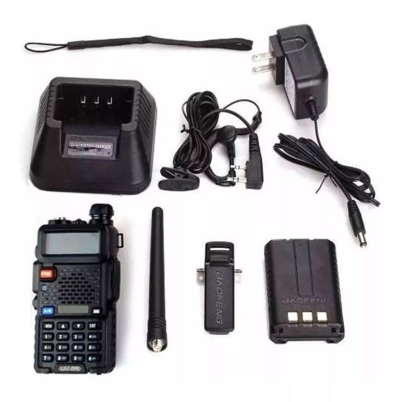 Rádio Comunicador HT Dual Band UHF VHF UV-5R com FM Fone de Ouvido PTTO Rádio Comunicador HT Dual Band UHF VHF UV-5R da marca Baofeng é a escolha ideal para quem busca comunicação eficiente e confiável em diversas situações. Com um alcance máximo de até 10 km, este modelo é perfeito para atividades ao ar livre, como trilhas, acampamentos ou eventos em grandes áreas.Equipado com 128 canais e 154 canais de privacidade, o UV-5R permite que você se conecte facilmente com sua equipe, garantindo que a comunicação permaneça clara e sem interferências. Sua tela e teclado numérico facilitam a navegação entre as funções, enquanto a lanterna integrada oferece uma solução prática para situações de baixa luminosidade.A bateria de 1800 mAh proporciona uma duração de até 12 horas, permitindo que você permaneça conectado durante todo o dia. Com potências de 1 W e faixas de frequência de 136 MHz a 174 MHz e 400 MHz a 520 MHz, este rádio é versátil e atende a diversas necessidades de comunicação.O modelo UV-5RA é digital e possui a função VOX, que permite a comunicação sem a necessidade de pressionar um botão. Este rádio comunicador é uma ferramenta indispensável para quem valoriza a praticidade e a eficiência na comunicação.