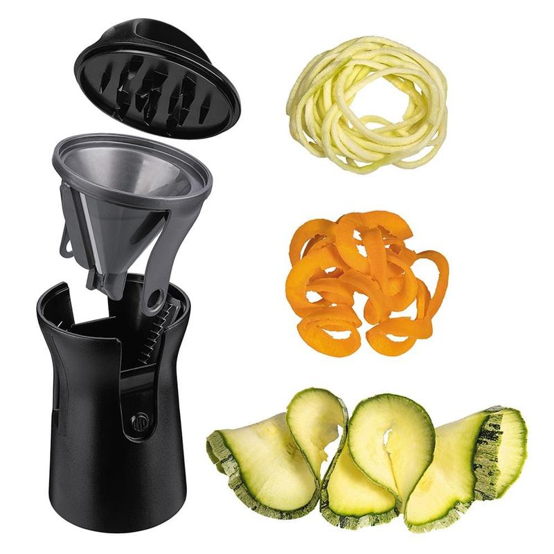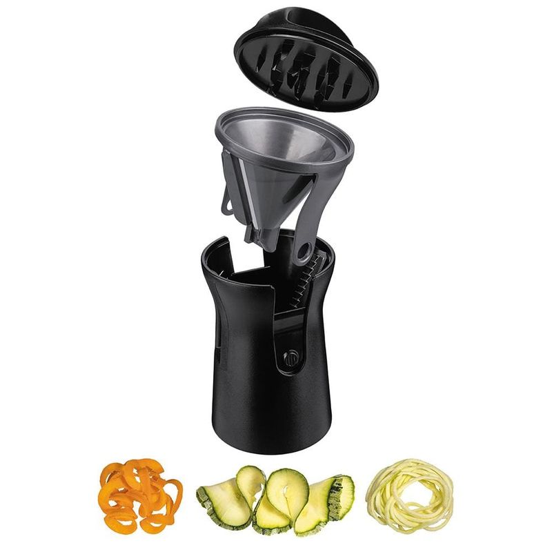 O Ralador 3 em 1 Espiral Multiuso Aço Inox Euro Home - Preto é ideal para quem busca inovação e praticidade no preparo de pratos diversos. Com ele você rala legumes variados, transformando-os em fios, fitas ou lascas, proporcionando mais liberdade para o preparo de pratos criativos e saborosos. O design ergonômico junto da potente lâmina de metal evita esforços ao ralar os produtos, facilitando o acesso à alimentação mais saudável e variada.