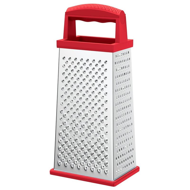 Esse é o produto ideal para quem busca praticidade. O Ralador 4 Faces 8 Inox Vermelho da Euro Home é um utensilio que permite ralar e fatiar em tamanhos e formatos diferentes. Com base antiderrapante, tornando mais seguro e prático para o uso diário.