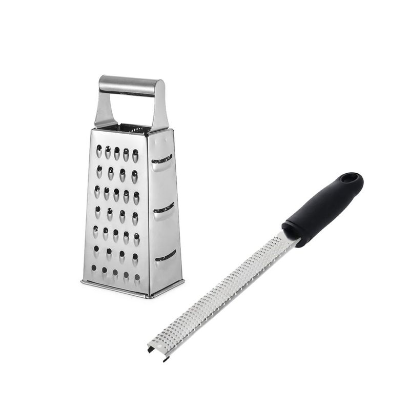 Ralador de queijo e zester. O ralador foi produzido em aço inox de qualidade, maior resistencia ao desgaste e a corrosao. O Ralador oferece diferentes tipos de cortes, perfeito para fatiar e ralar legumes, verduras e queijos em fios grossos, medios e finos. O Ralador Zester, proprio para tirar finas raspas de cascas de limao, laranja, frutas citricas e especiarias. Seu formato estreito, ocupa pouco espaço dentro da gaveta. Perfeito para finalizar seus pratos com noz moscada, raspa de limao, queijo parmesao e outros. Contem: 1 Ralador Zester Medidas: 32 x 3,5 cm 1 Ralador 4 Faces Medidas: 21,5 x 9 x 7 cm Material: Aço Inoxidavel