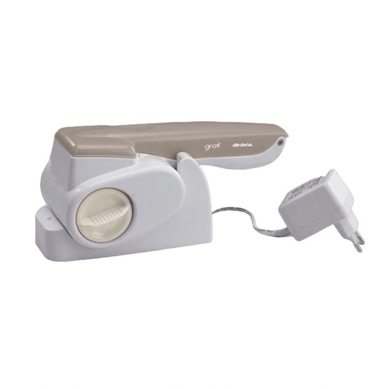 Ralador De Queijo Elétrico Sem Fio Recarregável Bivolt ArieteO Ralador Elétrico de Queijo Sem Fio é leve e de fácil manuseio, basta apertar um botão e o alimento será ralado, com design elegante e colorido, o ralador da linha Grati é um produto extremamente conveniente para uso na cozinha ou na mesa, que só a marca Ariete pode oferecer.A base recarrega a bateria totalmente em aproximadamente 15 horas, cada carga permite o uso por até 100 operações seguidas ou até 1kg. O ralador é totalmente desmontável para limpeza e seus acessórios podem ir à lava louças. Este produto é ideal para ralar queijos, pão torrado, nozes, chocolate e castanhas.Especificações do Produto:- Rale queijo, pão torrado, nozes, chocolate e castanhas- Pode ser pendurado na parede- Design ergonômico- Recarregável e acompanha o carregador- Use por até 100 operações seguidas sem carregar ou até 1kg- Totalmente desmontável para limpezaFicha Técnica:- Código: 4083190015- Marca: Ariete- Modelo: Grati- Conteúdo da Embalagem: 1 Ralador e 1 Carregador- Material: Corpo em ABS e lâmina em aço Inox- Voltagem: Bivolt- Cor: Branco e Cinza- Peso: 780g- Dimensões: 11cm x 23cm x 9,5cm (AxLxP)- Garantia: 3 Meses (Contra defeito de fabricação)Texto Complemento -Altura - 11cmLargura - 23cmProfundidade - 9,5cmPeso - 780gSobre a Marca - A marca italiana Ariete, fundada em 1964, tem sede na Toscana e é conhecida pela criatividade e inovação. O seu sucesso reside em produtos diferenciados e concebidos de forma criativa, apoiados por investimentos significativos em pesquisa e desenvolvimento. A Ariete oferece uma linha de produtos que inclui liquidificadores, sanduicheiras, raladores elétricos, aparelhos de limpeza e muito mais. A marca agora se expande para o Brasil com produtos renovados e pensados para o mercado brasileiro, mantendo a qualidade europeia.