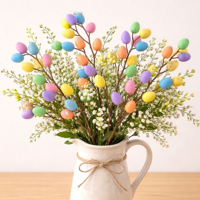 Ramo Galho Com Ovos Enfeite Decorativo Páscoa 40cm Kit 2pçs - Deixe sua decoração de Páscoa ainda mais charmosa com este kit de ramos decorativos com ovos coloridos. Ideal para compor arranjos, vasos, centros de mesa e decorações temáticas, ele traz cores suaves e um acabamento delicado que valoriza qualquer ambiente Destalhes do produto: Decoração temática de Páscoa Ovos coloridos delicados e harmoniosos Ideal para vasos, arranjos e centros de mesa Medidas: Altura 40cm x Largura 15cm 24 ovos em cada ramo Embalagem: Kit 2 ramos/galhos com ovos coloridos decorativos de páscoa de 40cm Características Gerais do Produto: • Material: Isopor • Modelo: Galhos De Páscoa • Cor: Colorido • Dimensões aproximadas: Altura 40cm x Largura 15cm Garantia: • Garantia do site - 1 Mês