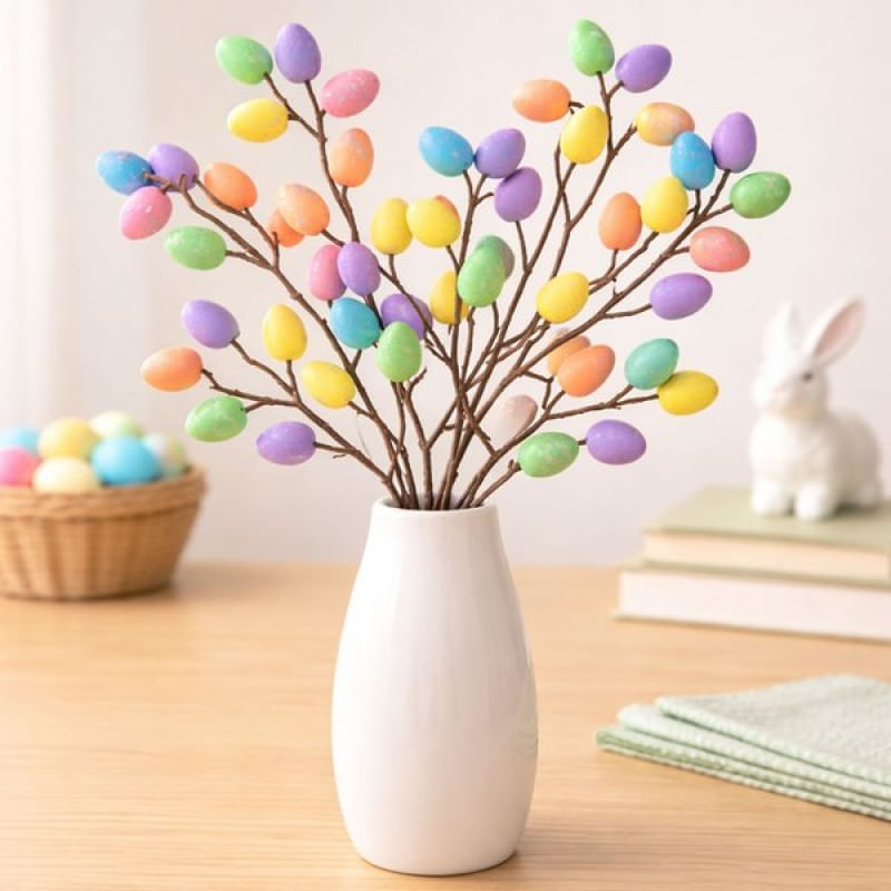 Ramo Galho Com Ovos Enfeite Decorativo Páscoa 40cm Kit 4pçs - Deixe sua decoração de Páscoa ainda mais charmosa com este kit de ramos decorativos com ovos coloridos. Ideal para compor arranjos, vasos, centros de mesa e decorações temáticas, ele traz cores suaves e um acabamento delicado que valoriza qualquer ambiente Destalhes do produto: Decoração temática de Páscoa Ovos coloridos delicados e harmoniosos Ideal para vasos, arranjos e centros de mesa Medidas: Altura 40cm x Largura 15cm 24 ovos em cada ramo Embalagem: Kit 4 ramos/galhos com ovos coloridos decorativos de páscoa de 40cm Características Gerais do Produto: • Material: Isopor • Modelo: Galhos De Páscoa • Cor: Colorido • Dimensões aproximadas: Altura 40cm x Largura 15cm Garantia: • Garantia do site - 1 Mês
