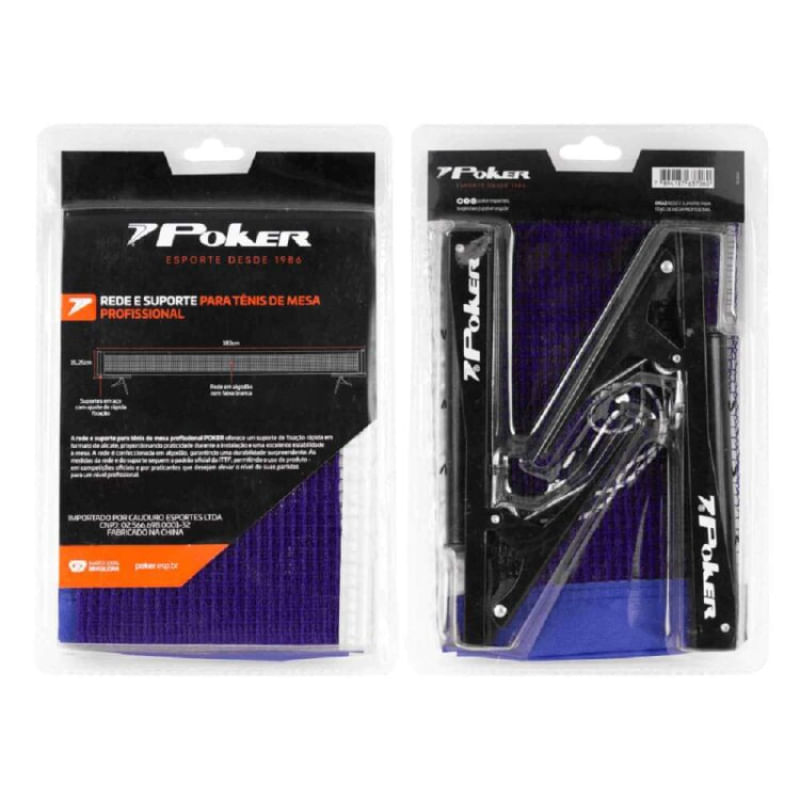 A Rede e suporte para tênis de mesa profissional POKER oferece um suporte de fixação rápida em formato de alicate, proporcionando praticidade durante a instalação e uma excelente estabilidade à mesa. A rede é confeccionada em algodão, garantindo uma durabilidade surpreendente. As medidas da rede e do suporte seguem o padrão oficial da ITTF, permitindo o uso do produto em competições oficiais e por praticantes que desejam elevar o nível de suas partidas para um nível profissional.Tamanho da rede: 183cm de largura x 15,25cm de altura.