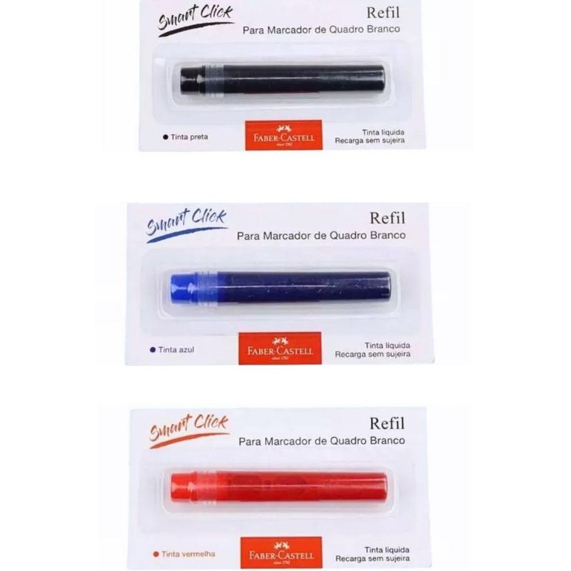 Refil Pincel Marcador Quadro Branco Faber-castell VermelhoRefil Pincel Marcador Quadro Branco FABER-CASTELL Vermelho -Refil para Marcador Quadro Branco Recarregável Faber-Castell. Disponível em 3 cores: vermelho, azul e preto. Recarga fácil e sem sujeira.Cores disponíveis:Azul, preto e vermelho.Características:Recarga fácil e sem sujeira;Marca: Faber-Castell.Características Gerais do Produto:Acompanha o produto: - 1 Pincel Marcador Quadro Branco Recarregável com Refil FABER-CASTELL (cor selecionada).