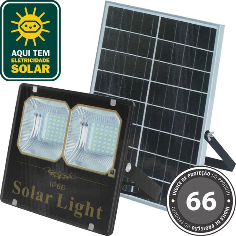 Refletor De Led Solar Automático Externo Inteligente 60 W - ATENÇÃO: IMAGENS ILUSTRATIVAS. O PRODUTO REAL PODE TER LEVES DIFERENÇAS COM AS FOTOS, MAS AS ESPECIFICAÇÕES E A FUNCIONALIDADE SÃO AS MESMAS. Lâmpada solar externa 60W 120 Diodos de LED, cada um com 0,5W 1000 Lúmens Temperatura da luz: 6500K (Luz ultra branca) Painel solar de 6V e 22W, Policristalino Bateria de Íon-Lítio de 3,2V e 20.000 mAh Tempo de carregamento: 6-8 Horas Tempo de funcionamento: 12 Horas Material: Aço Área de iluminação: 5 metros de diâmetro, ou 80 metros quadrados. Grau de proteção: IP66 (Totalmente protegido contra pó e protegido contra jatos d'água em qualquer direção) Vida útil: 50.000 Horas Conteúdo da embalagem: 01 Refletor de LED 60W 01 Painel solar 6V 01 Controle remoto 01 Manual de instruções Características Gerais do Produto: Garantia: • Garantia do site - 1 Mês