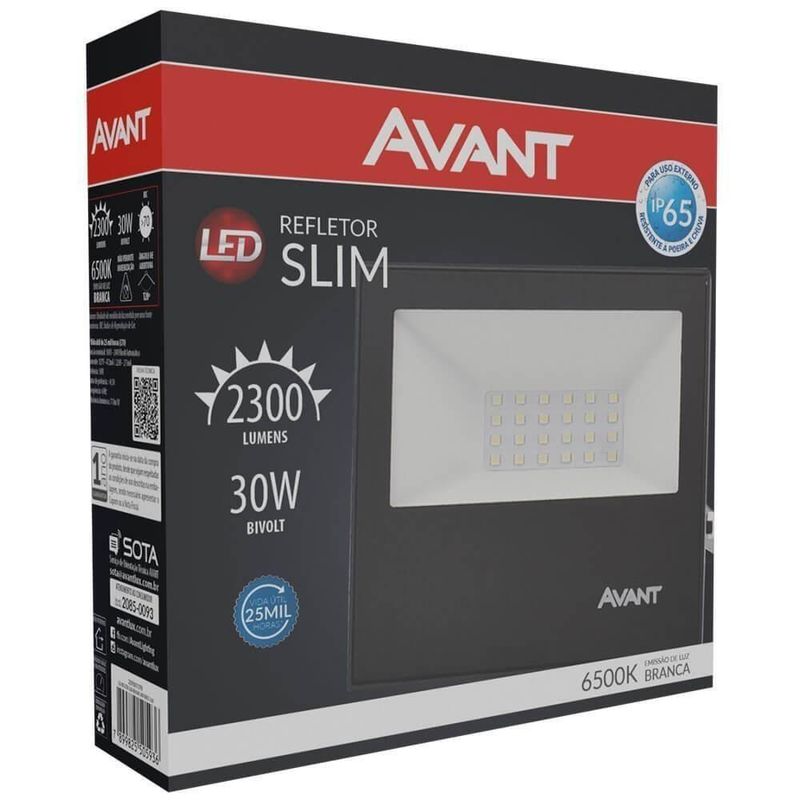 Refletor Led Holofote Avant 30w Luz Branco Frio 6500k 2250 Lúmens Slim30 Resist. Chuva Ip65 BivoltREFLETOR LED HOLOFOTE AVANT 30W LUZ BRANCO FRIO 6500K 2250 LÚMENS SLIM30 RESISTENTE CHUVA IP65 BIVOLTMarca: AvantModelo: Slim30 30W Branco 6500kDESCRIÇÃO DO REFLETOR LED 30W LUZ BRANCO FRIO 6500K- A iluminação de áreas externas pede uma luminária eficiente, potente e econômica.- A linha de refletores Slim da Avant faz esse papel muito bem e ainda possui dimensões compactas e design super clean e discreto.- Seus usos são os mais diversos: galpões, estacionamentos, jardins, quintais, fachadas, quadras, campos de futebol e muito mais.- Iluminação externa comercial, corporativa e residencial.INFORMAÇÕES GERAIS DO REFLETOR LED 30W LUZ BRANCO FRIO 6500K- Corpo em alumínio e difusor em vidro.- Possui driver incorporado.- Não desbota objetos (não emite ultravioleta).- Fluxo luminoso constante em toda faixa de tensão.- Construção livre de mercúrio.- Baixo consumo de energia.- Temperatura ambiente: -5°C a 40°C.- Tensão de entrada: 100V a 240V.- Tipo de Instalação: Sobrepor.-Tensão: Bivolt Automático (100V - 240V)- Não Dimerzável- Índice de proteção: IP65- Ângulo De Abertura: 120°- IRC:>80- Uso externo- Faixa de potência: 22,5W - 30W- Fluxo Luminoso: 2250 lumens- Eficiência Luminosa: 75 lm/W- Emissão de cor: Branca- Temperatura de cor: 6500KPESO- 0,373 KgGARANTIA- 12 meses de garantiaMEDIDAS- Dimensões do produto: 30 x 143 x 123 mm (Alt. x Larg. x Prof.) EmbalagemComprimento-cm: 12 | EmbalagemLargura-cm: 12 | EmbalagemAltura-cm: 4 | Peso Líquido: 0.1500 | Dias Fornecedor: 0 | Modelo: Slim30 BR6500K | Marca: Avant | Cubagem: 0.000576