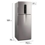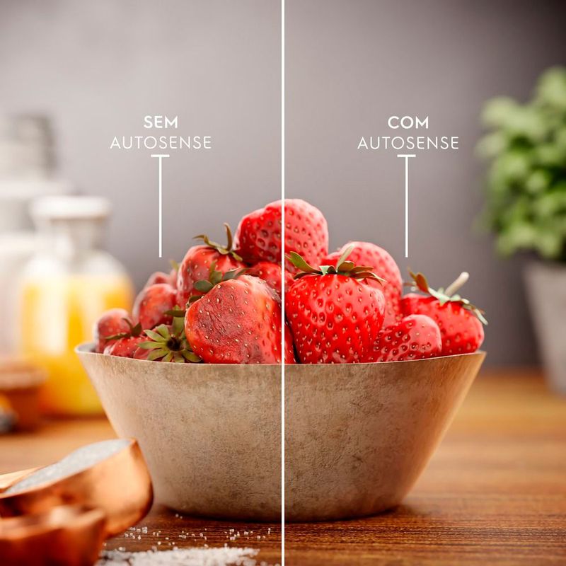 A Geladeira Duplex com AutoSense e SmartBivolt Electrolux 480L oferece versatilidade, permitindo o uso em diferentes ambientes e garantindo mais sabor e frescor para as refeições da sua família. A inteligência artificial usada na tecnologia exclusiva AutoSense aprende sobre seu dia a dia e reconhece sua frequência de uso, controlando a temperatura automaticamente. Dessa forma, prolongue a vida dos alimentos por até 30%¹ mais tempo. A Gaveta HortiNatura possui uma vedação especial que evita o contato direto com a temperatura da geladeira, preservando o frescor de frutas e vegetais por até 2x² mais tempo. Para reduzir o impacto ambiental, a eficiência energética mantém a temperatura mais estável e garante condições ideais para preservar os alimentos, além de ter classificação A+++ e economizar até 47%³ de energia. Além disso, a Geladeira Duplex IT70 está equipada com a tecnologia SmartBivolt, que permite você conectar sua geladeira bivolt tanto na tensão (voltagem) 127V quanto na 220V. Com isso, você tem mais flexibilidade e maior resistência à oscilação de tensão4, garantindo que sua geladeira opere sem interrupções entre 90V e 310V e suporte picos de tensão de até 350V5. Conte também com a flexibilidade das prateleiras reversíveis e FastAdapt, que permitem você adaptar o espaço interno da geladeira da forma que desejar. Destaques AutoSenseControla a temperatura automaticamente usando Inteligência Artificial e prolonga a vida dos alimentos por até 30%¹ mais tempo. Gaveta HortiNatura Gaveta possui vedação que preserva o frescor de frutas e vegetais por até 2x² mais tempo. Eficiência EnergéticaMantém a temperatura mais estável e garante condições ideais para preservar os alimentos, além de ter classificação A+++ e economizar até 47%³ de energia. SmartBivolt A tecnologia SmartBivolt permite você conectar sua geladeira bivolt tanto na tensão (voltagem) 127V quanto na 220V. Com isso, você tem mais flexibilidade e maior resistência à oscilação de tensão⁴, garantindo que sua geladeira opere sem interrupções entre 90V e 310V e suporte picos de tensão de até 350V⁵. Prateleiras ReversíveisAdapte o espaço interno da sua geladeira, para armazenar os mais diversos tipos de embalagens e alimentos. Prateleiras FastAdaptPrateleiras deslizantes que permitem diferentes configurações internas para armazenar alimentos e bebidas de diversos tamanhos. IceMaxGelo sempre à mão de maneira mais fácil com IceMax, compartimento com abertura exclusiva que permite a reposição da água sem respingos, que não mistura odores com o restante do freezer e é fácil de remover. Luz de LED na GeladeiraLuz LED interna para melhor visualização do interior da sua geladeira. Gás ecológico Não agride o meio ambiente nem a camada de ozônio. Separador de Garrafas Organiza melhor a prateleira inferior da porta. Bandeja de ovos: Mais conveniência e organização na sua geladeira, com capacidade para 12 ovos. Filtro ExtraFresh (vendido separadamente) Absorve até 90%⁶ do gás etileno, para desacelerar o amadurecimento de frutas e vegetais e deixá-los mais frescos por mais tempo. ¹Resultados obtidos em testes realizados pela FURB (Universidade Regional de Blumenau) com morangos e leite.²Resultados obtidos em testes realizados pela FURB (Universidade Regional de Blumenau) em morangos, cogumelos e alface.³Em relação à classificação energética A.⁴A oscilação de tensão pode afetar a temperatura de refrigeração, as condições de preservação dos alimentos e a eficiência energética da geladeira.⁵Independentemente da voltagem da rede elétrica, respeite as normas de segurança e as instruções do manual do produto.⁶Resultado obtido com o uso correto do filtro em compartimento totalmente selado. CaracterísticasTipo: 02 PortasQuantidade de Portas: 02Frost FreePainel EletrônicoPrateleiras: 03 Prateleiras e 01 Gaveta Alarme de Porta Aberta Especificações TécnicasModelo: IT70SCor: Inox LookSelo Procel (Eficiência Energética): ACapacidade Total: 480 LitrosCapacidade de Armazenamento do Freezer: 128 LitrosCapacidade de Armazenamento do Refrigerador: 509 LitrosConsumo de Energia: 36.4 kWh/mêsVoltagem: BivoltEAN: 7909569446249Garantia: 12 meses Dimensões e PesoDimensões do produto sem embalagem (AxLxP): 1890x705x760 mmDimensões do produto com embalagem (AxLxP): 1925x740x803 mmPeso do produto sem embalagem: 67,0 kgPeso do produto com embalagem: 68 kg Itens Inclusos01 Refrigerador 01 Porta Ovos01 Forma de GeloManual de Instruções Serviço de Instalação e Orientação de UsoPara sua comodidade e segurança, a Fast Shop dispõe do serviço de Instalação e Orientação de Uso*. Agendamos o serviço para você, executamos a instalação com equipes próprias especializadas e autorizadas pelo fabricante, ensinamos como utilizar os produtos da melhor forma e temos uma área de qualidade para acompanhar e garantir que tudo dê certo. É rápido e fácil.Você pode contratar o serviço com o nosso canal Blá pelo WhatsApp no número (11) 3232-2949 ou em uma de nossas lojas. Consulte os valores e regiões atendidas.