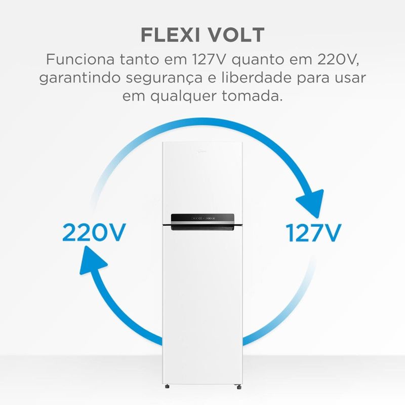 Geladeira Frost Free Midea MDRT572EVD013 Inverter 425L Duplex Branca Bivolt A geladeira Frost Free Duplex 425L da Midea oferece amplo espaço interno e design moderno para facilitar o dia a dia da sua cozinha. Com capacidade total de 425 litros, garante melhor organização dos alimentos e bebidas. A tecnologia Inverter proporciona resfriamento eficiente, baixo ruído e economia de energia, contando com classificação A no novo padrão do INMETRO. O sistema Frost Free realiza o degelo automático, trazendo mais praticidade. Com a função Turbo Freezer, é possível atingir temperaturas mais baixas em menos tempo. O painel eletrônico externo facilita o controle das funções, enquanto a gaveta hortifruti e as prateleiras de vidro auxiliam na organização e na limpeza. Capacidade total de 425L com freezer de 120L Tecnologia Inverter com classificação energética A Sistema Frost Free com degelo automático Função Turbo Freezer Painel eletrônico externo