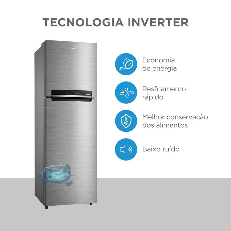 Refrigerador Frost Free Midea MDRT572EVD463 Inverter 425L Duplex Inox Bivolt