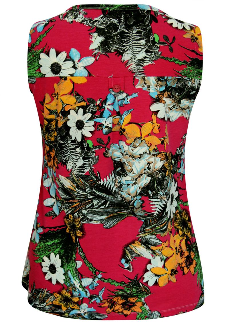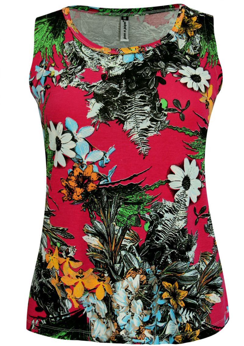 Regata em malha estampada, sobre o fundo pink, com decote redondo. Alças Largas. Possui detalhe de botão nas costas. Modelagem soltinha ao corpo. Confortável e despojada. Arrase! Composição da malha: Confeccionado em 95% Viscose e 5% Elastano. Toque macio. Medidas Aproximadas: PP: 65 x 90 x 92 x 106 cm (Altura, Busto, Cintura e Quadril). P: 67 x 96 x 98 x 112 cm (A, B, C, Q). M: 69 x 102 x 104 x 118 cm (A, B, C, Q). G: 71 x 108 x 110 x 124 (A, B, C, Q). GG: 73 x 114 x 116 x 130 cm (A, B, C, Q). XL: 75 x 120 x 122 x 136 cm (A, B, C, Q). Todos os dados informados são aproximados, do peso às medidas.