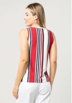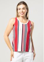 Regata Feminina alças largas e decote redondo. Listras verticais nas cores Vermelho, Azul Marinho e Off White. Acabamento de punho na cor Off White no decote e punho Vermelho nas cavas. Casual e perfeito para seu dia a dia. Permita-se!!! Composição da malha: Confeccionado em 95% Viscose e 5% Elastano. Medidas aproximadas: P: 60cm Comprimento x 90cm Busto x 88cm Cintura x 96cm Quadril. M: 62cm Comprimento x 96cm Busto x 94cm Cintura x 106cm Quadril. G: 64cm Comprimento x 102cm Busto x 100cm Cintura x 108cm Quadril. GG: 66cm Comprimento x 108cm Busto x 106cm Cintura x 114cm Quadril. XL: 68cm Comprimento x 114cm Busto x 112cm Cintura x 120cm Quadril. Todos os dados informados são aproximados, do peso às medidas. ATENÇÃO PARA AS MEDIDAS. MODELAGEM AMPLA. *Modelo está usando o tamanho P*