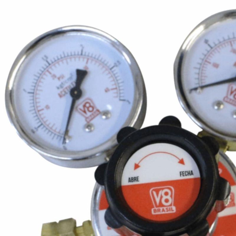 Regulador De Pressão Acetileno - 110183 - V8 Brasil Regulador de Pressão Acetileno - 110183 - V8 BRASILDescrição: Projetado para reduzir a pressão do cilindro para uma pressão definida de uso, mantendo-a constante, mesmo que exista grande variação de pressão de entrada e na vazão de saída do gás. Características: - Escala de fácil leitura; - Fácil manutenção; - Corpo em latão forjado; - Dimensões (CxLxA) 15x15x10,5cm; - Peso: 0,9kg. * Imagens meramente ilustrativasmeli_shipping_mode - me1