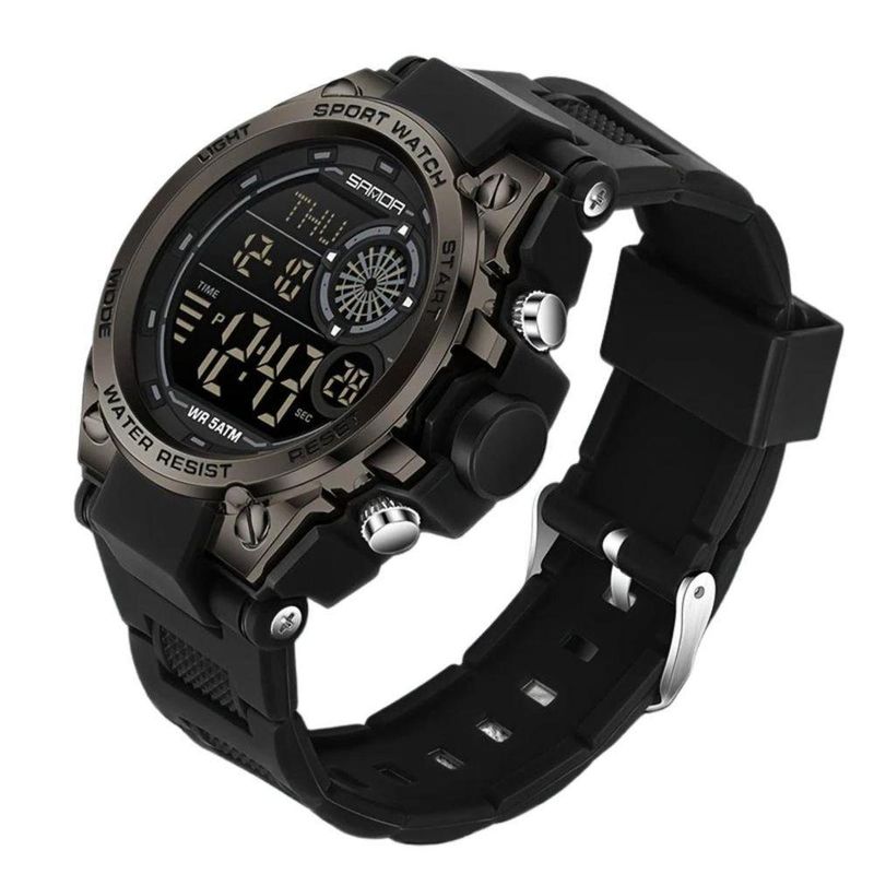 Relógio 6255 Led De Fundo Iluminado, Alarme Cronógrafo Temporizador PretoDescubra o versátil Relógio Esportivo Masculino que combina estilo e funcionalidade, feito sob medida para aqueles que vivem um estilo de vida ativo. Projetado para atender tanto adolescentes quanto adultos, este relógio atlético possui um design robusto com funções práticas, como alarme, cronógrafo e temporizador, perfeito para monitoramento fitness diário. Com um display digital, ele facilita a visualização em qualquer ambiente graças ao LED de fundo iluminado. Ideal para academia, natação ou simplesmente para um uso casual diário, sua durabilidade garante que este relógio esporte será um companheiro confiável em qualquer atividade que você se proponha a enfrentar.O Relógio Esportivo Masculino SANDA destaca-se pelo seu design contemporâneo e energia jovem, refletindo o espírito da Geração Z. Equipado com dupla zona horária, é perfeito para viajantes e para aqueles que mantêm conexões globais. Com uma construção resistente em material durável como o TPU, e um estojo de plástico robusto, este relógio é projetado para suportar os desafios do seu dia a dia esportivo, ao mesmo tempo em que complementa seu visual moderno e casual.Especificações:[Faixa etária aplicável]: Feito para aqueles com mais de 15 anos, este relógio combina estilo juvenil e sofisticação adulta em um único dispositivo.[Material da correia]: Elaborado com TPU, um material conhecido por sua resistência e flexibilidade, garantindo conforto durante todo o dia, esteja você na academia ou em um casual encontro com amigos.[Material do estojo]: Com um robusto caso de plástico, o relógio não só oferece durabilidade, mas também um visual esportivo moderno que se destaca nas mais diversas situações.[Display e Estilo]: Apresenta um display digital que facilita a leitura imediata do tempo, essencial para o estilo de vida apressado da geração atual.[Modo de energia]: Funciona com uma bateria tipo botão, oferecendo longevidade e confiabilidade, eliminando a necessidade de constantes recargas ou preocupações desnecessárias.