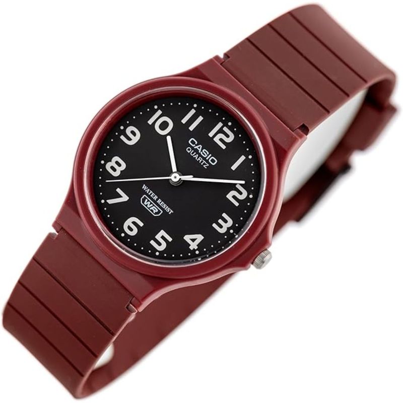 Informações Do Relógio Marca Casio Número da peça MQ-24UC-4BDF Forma Redondo Cristal Vidro, Resina Tipo de tela ou mostrador Análogico Fecho Fecho de alternância Material da caixa Resina Diâmetro da caixa 38.8 milímetros Espessura da caixa 7.8 milímetros Material da faixa, pulseira ou tira Silicone Largura da faixa, pulseira ou tira 20 milímetros Cor da faixa, pulseira ou tira Vinho Cor do mostrador preto Características especiais Calendário, Resistente à água Peso 150 g