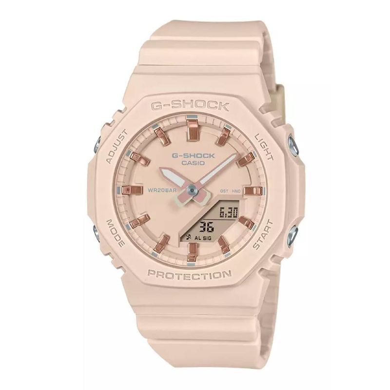 DESCRIÇÃO DO PRODUTO: Visor: LCD Funções: Calendário, Anadigi, Horário Mundial (GMT) com função horário de verão, Cronógrafo (Modos de medição: tempo decorrido, tempo parcial, tempos do 1º e 2º lugares), Timer, 5 Alarmes Diários, Sinalização Horária, Iluminação, Recurso de mudança do ponteiro (os ponteiros se afastam para fornecer uma visão desobstruída do conteúdo do visor digital).Resistência à Água: 200mDiâmetro da Caixa: 40 mmCaracterísticas: com caixa em Resina Nude e pulseira em Poliuretano NudeVidro: MineralEstilo: EsportivoFundo: ParafusadoLinha: Casio G-Shock Woman Carbon Core GuardMostrador nudeGarantia de 1 Ano