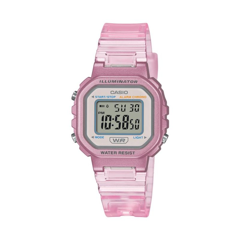 DESCRIÇÃO DO PRODUTO: Visor: LCD Funções: Calendário, Iluminação, Cronógrafo, Alarme, Sinal HorárioResistência à Água: 50mDiâmetro da Caixa: 30 mm x 26 mmCaracterísticas: com caixa em Resina Rosa e pulseira em Poliuretano Rosa TranslúcidoVidro: AcrílicoEstilo: InfantilFundo ParafusadoAlimentação do Maquinário: BateriaGarantia de 1 Ano