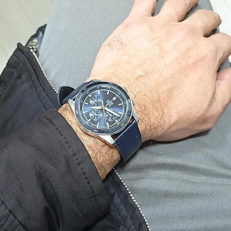DESCRIÇÃO DO PRODUTO: Visor: AzulFunções: Analógico, Cronógrafo, CalendárioResistência à Água: 100mDiâmetro da Caixa: 42 mmCaracterísticas: com caixa em Aço Inoxidável e pulseira em Couro Legítimo AzulFundo: RosqueadoAlimentação do Maquinário: BateriaVidro: Cristal MineralMaquinário JaponêsLinha: Casio EdificeAro Fixo AzulGarantia de 1 Ano