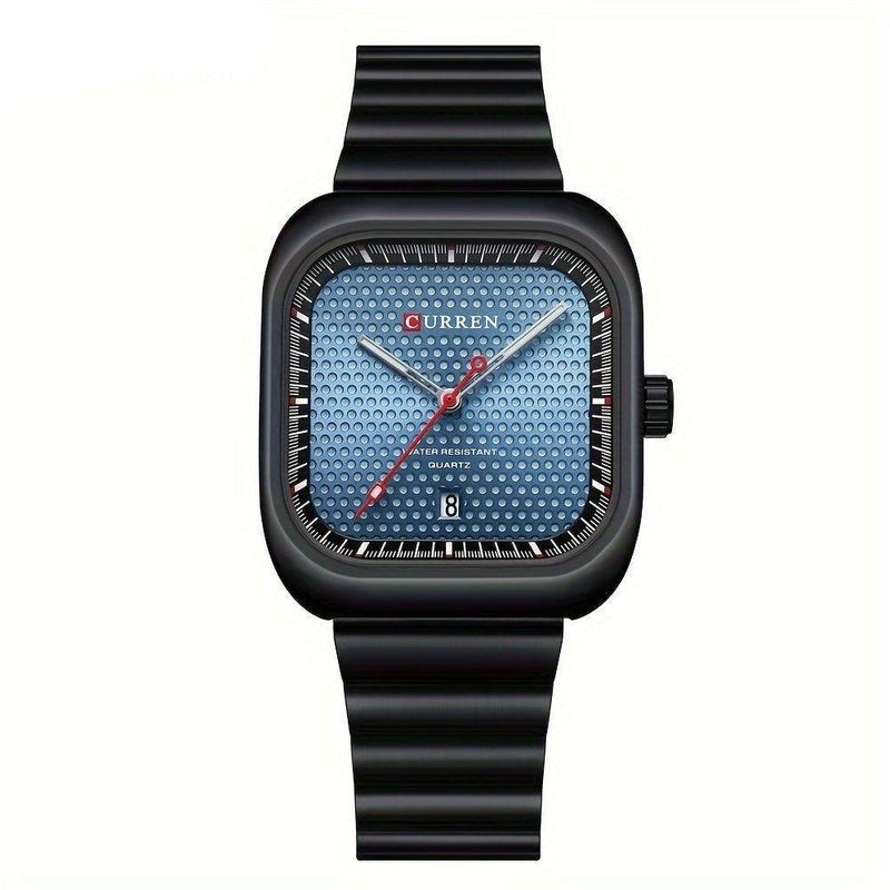 Relógio Casual Masculino De Quartzo Pulseira De Aço Inoxidável Quadrado Azul PretoDescubra o sofisticado , uma peça que combina elegância e funcionalidade. Com uma design moderno e robusto, este relógio é ideal para o homem que busca estilo sem abrir mão da utilidade. A pulseira de aço inoxidável oferece durabilidade e resistência, enquanto a caixa de liga de zinco adiciona um toque contempôraneo. Perfeito para qualquer ocasião, este relógio não apenas marca o tempo, mas também a sua presença.O mostrador quadrado traz um charme único, destacando-se entre os tradicionais formatos redondos. Equipado com função de data e capacidade de resistência à água, é um acessório ideal para o dia a dia. Impulsionado por um movimento eletrônico e alimentado por uma bateria de botão, garante precisão e confiança em cada segundo. Especificações: [Design Robusto]: Apresenta uma caixa de liga de zinco quadrada que oferece um estilo distinto e moderno, ideal para qualquer momento do seu dia. [Pulseira de Aço]: A pulseira feita em aço inoxidável não apenas garante durabilidade e segurança, como também adiciona um toque sofisticado ao visual. [Função Prática]: Com uma função de data integrada, este relógio combina elegante simplicidade com a praticidade que o usuário contemporâneo precisa. [Resistência à Água]: Com classificação IPX8, sinta-se seguro para usar seu relógio em diversas condições, sem se preocupar com danos por umidade. [Movimento de Precisão]: Equipado com tecnologia de relógio de quartzo de alta precisão, assegura que você sempre estará no horário certo.