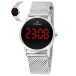 DESCRIÇÃO DO PRODUTO: Caixa Em MetalPulseira Em Malha de Aço MeshVidro de Cristal MineralFundo RosqueadoResistente à Água 5 AtmDiâmetro / Largura da Caixa: 32.00 MMFunções: Digital, LED Vermelho, DataMostrador PretoAlimentação do Maquinário: BateriaGarantia de 1 Ano
