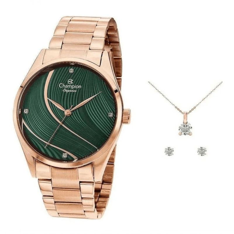 Relógio Champion Kit Feminino Analógico Rosê Cn24655vRelógio CHAMPION KIT feminino analógico rosê CN24655V NOVO e ORlGlNAL.Acompanha embalagem oficial, certificado de garantia de 1 ano pelo fabricante, manual de instruções e N0TA FlSCAL.Modelo: CN24655VGênero: FemininoGarantia: 12 mesesCaracterísticasFormato do Relógio: RedondoComposição do Vidro: Cristal MineralMaterial da Caixa: Aço InoxCor da Caixa: RosêCor do mostrador: Rosê, VerdeMaterial da Pulseira: Aço InoxCor da Pulseira: RosêMecanismo: Analógico QuartzMedidasLargura da Caixa: 38mmEspessura da Caixa: 8 mmResistência à ÁguaPressão: 5 ATMsResistência a respingos: SimPrática de natação: SimPrática de mergulho: Não recomendadoNão recomendado utilizar em água salgada ou durante o banho quente(exceto relógios apropriados para mergulho profissional)