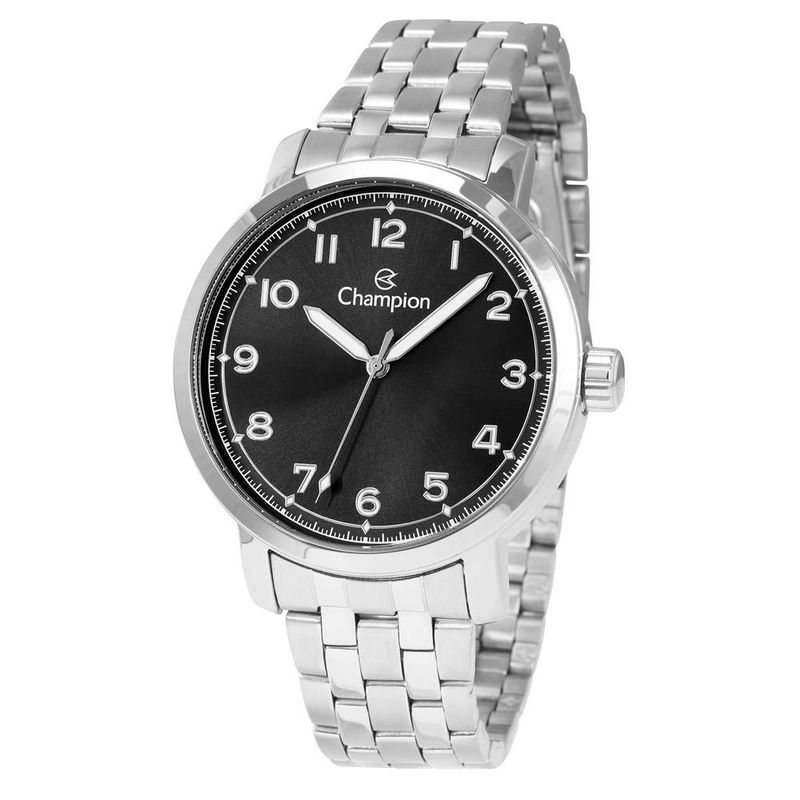 DESCRIÇÃO DO PRODUTO: Caixa Em MetalPulseira Em AçoVidro de Cristal MineralFundo de PressãoResistente à Água 5 AtmDiâmetro / Largura da Caixa: 43.00 MMFunções: AnalógicoMostrador Preto com todos os númerosAlimentação do maquinário: BateriaGarantia de 1 Ano