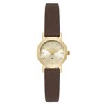 DESCRIÇÃO DO PRODUTO: Caixa de MetalPulseira de Couro Ecológico MarromVidro de Cristal MineralFundo PressãoResistente à Água 5 AtmDiâmetro / Largura da Caixa: 23.00 MM Alimentação do Maquinário: Bateria Maquina JaponesaMostrador Dourado com todos os númerosGarantia de 1 Ano