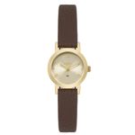 DESCRIÇÃO DO PRODUTO: Caixa de MetalPulseira de Couro Ecológico MarromVidro de Cristal MineralFundo PressãoResistente à Água 5 AtmDiâmetro / Largura da Caixa: 23.00 MM Alimentação do Maquinário: Bateria Maquina JaponesaMostrador Dourado com númerosGarantia de 1 Ano