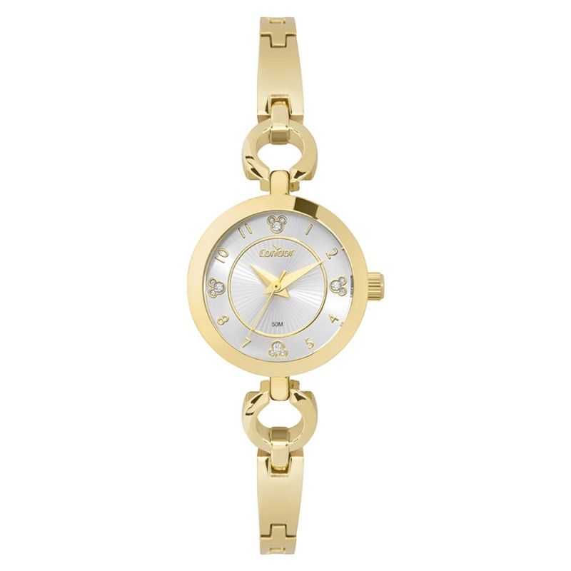 DESCRIÇÃO DO PRODUTO: Caixa de MetalPulseira de Metal Estilo BraceleteVidro de Cristal MineralFundo PressãoResistente à Água 5 AtmDiâmetro / Largura da Caixa: 25.00 MM Alimentação do Maquinário: Bateria Maquina JaponesaMostrador prateado com numeros, pedras e detalhes do Personagem Mickey MousePRODUTO OFICIAL LICENCIADO DISNEY Garantia de 1 Ano