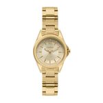 DESCRIÇÃO DO PRODUTO: Caixa de MetalPulseira de AçoVidro de Cristal MineralFundo PressãoResistente à Água 5 AtmDiâmetro / Largura da Caixa: 33.00 MM Alimentação do Maquinário: Bateria Maquina JaponesaMostrador Dourado com numero e pedras Garantia de 1 Ano