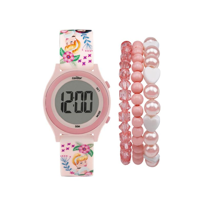 DESCRIÇÃO DO PRODUTO: Caixa de Resina Rosa Clara com detalhes em Rosa Pulseira de Silicone Rosa Clara Estampada com personagens Princesas da DisneyFundo de ParafusadoDiâmetro / Largura da Caixa: 36.00 MMFunções: Digital, CalendárioResistente à água 5 ATMAlimentação do Maquinário: BateriaMaquina JaponesaMostrador Rosa Claro com detalhes em pretoLinha: Condor Kids+ Pulseira de miçanga Infantil**Imagem meramente ilustrativa da pulseiraProduto Oficial Licenciado DisneyClassificação Indicativa: A partir de 4 Anos de IdadeGarantia de 1 Ano