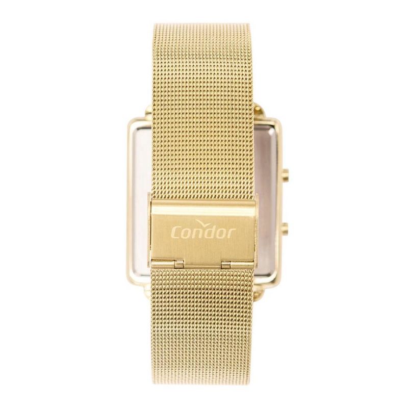 DESCRIÇÃO DO PRODUTO: Caixa de MetalPulseira de Malha de Aço MeshVidro de Cristal MineralFundo PressãoResistente à Água 5 AtmDiâmetro / Largura da Caixa: 35.00 MM x 38.00 MM Alimentação do Maquinário: BateriaFunções: Digital, Led Branco, Calendário Mostrador Dourado espelhado Garantia de 1 Ano