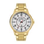 DESCRIÇÃO DO PRODUTO: Caixa de MetalPulseira de AçoFundo de PressãoDiâmetro / Largura da Caixa: 47.00 MMFunções: Analógico, CalendárioResistente à água 5 ATMAlimentação do Maquinário: BateriaMaquina JaponesaMostrador Branco com númerosGarantia de 1 Ano