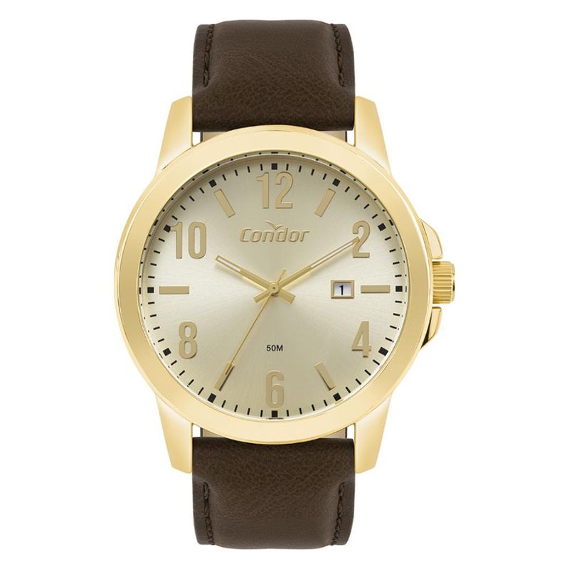 DESCRIÇÃO DO PRODUTO: Caixa de MetalPulseira de Couro Ecológico Marrom ClaroFundo de PressãoDiâmetro / Largura da Caixa: 44.00 MMFunções: Analógico, CalendárioResistente à água 5 ATMAlimentação do Maquinário: BateriaMaquina JaponesaMostrador Dourado com númerosGarantia de 1 Ano