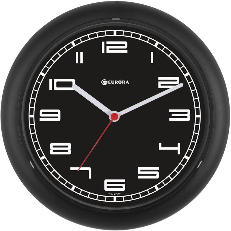 DESCRIÇÃO DO PRODUTO: Medidas: 24,5D x 3,3E cmCaracterísticas Técnicas:Usa pilha AAMecanismo Step (Tic-Tac)Produto Nacional Informações sobre o produto:Relógio de parede Base em Plástico InjetadoBotões de regulagem na parte traseira do produtoCor da Base: Preto Cor do Mostrador: Preto com números brancosIdeal para o dia-a-diaGarantia de 1 ano